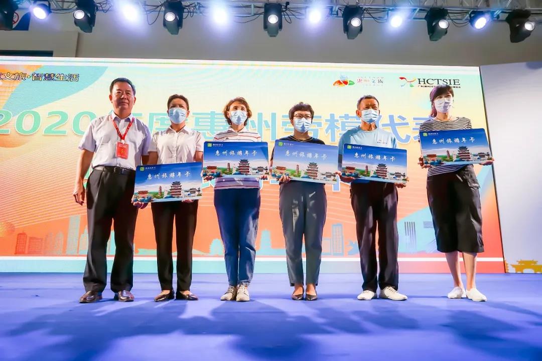 ▲惠州市文化廣電旅游體育局二級調(diào)研員田佑良為勞模代表頒發(fā)惠州旅游年卡
