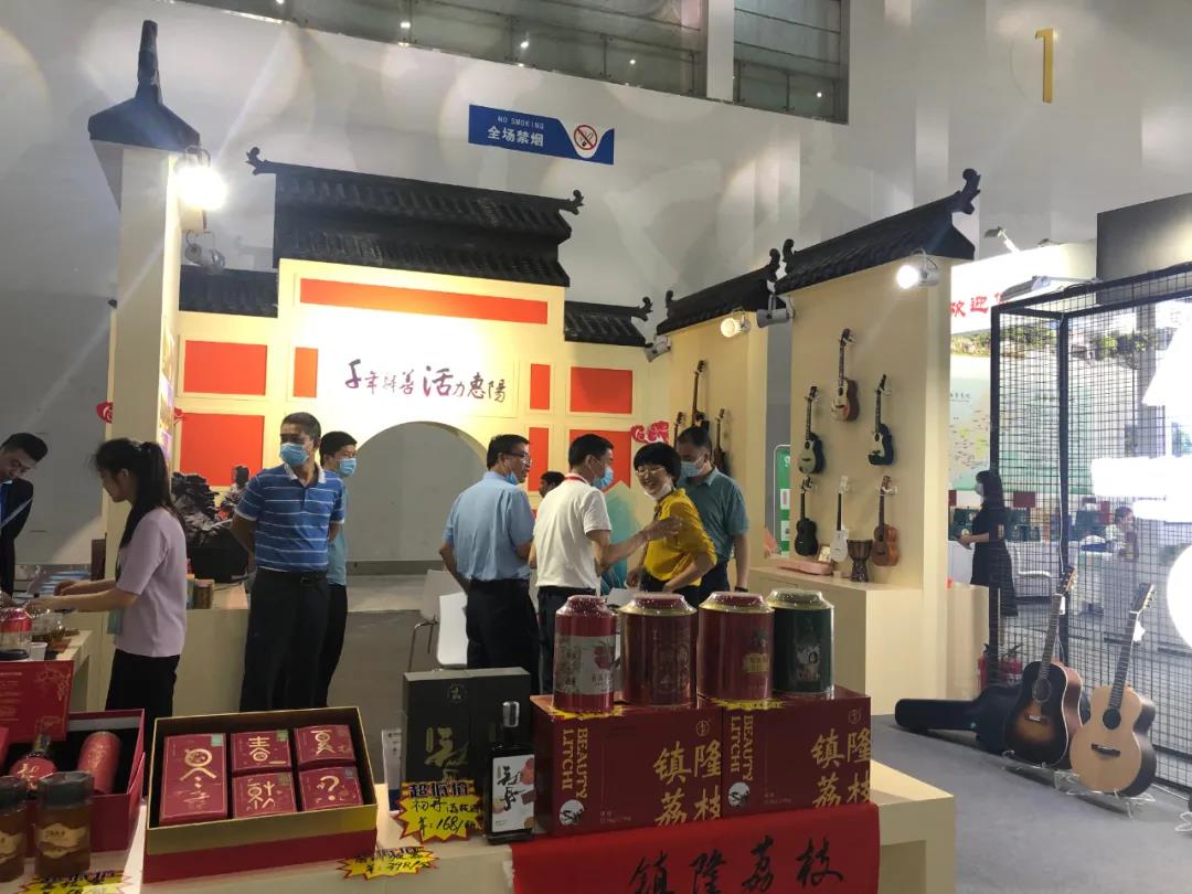 ▲惠陽展區(qū)的吉他、荔枝、秋長八月豆值得大家來選購